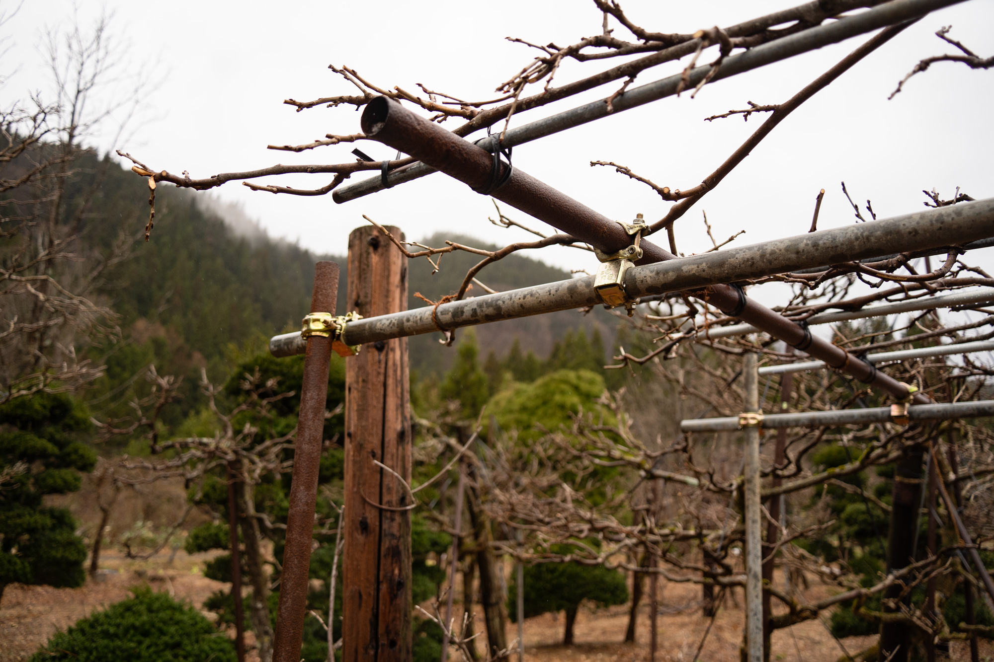 そのため今年の開園に間に合わせるように藤の枝の修復作業を行いました。
