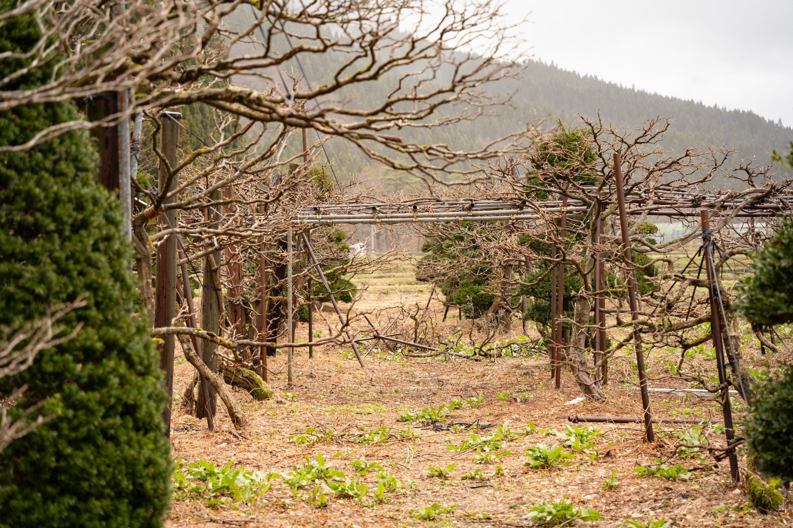 崩れてしまった藤棚も新たに単管などで補強し元の状態に戻しました。